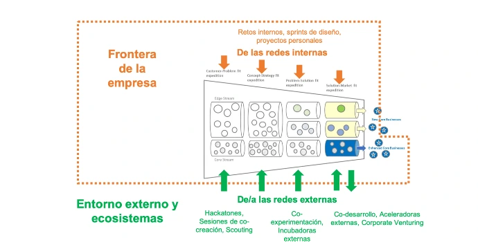 Tanto las redes internas (la forma en la que la gente interactúa dentro de tu organización), como las redes externas (innovación abierta) son parte fundamental para que tus esfuerzos de innovación sean fructíferos.
