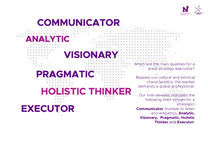 Este informe es el resultado de un estudio realizado por NováreQ, en alianza con Strategy Tools, a través de entrevistas y cuestionarios con estrategas - Chief Strategy Directors, Strategy Directors, Strategy Vicepresidents, Jefes de Estrategia, y CEOs, entre otras nomenclaturas que varían según la empresa, industria y región. Sin embargo, todos son individuos dedicados a encontrar formas para que sus organizaciones tengan éxito.